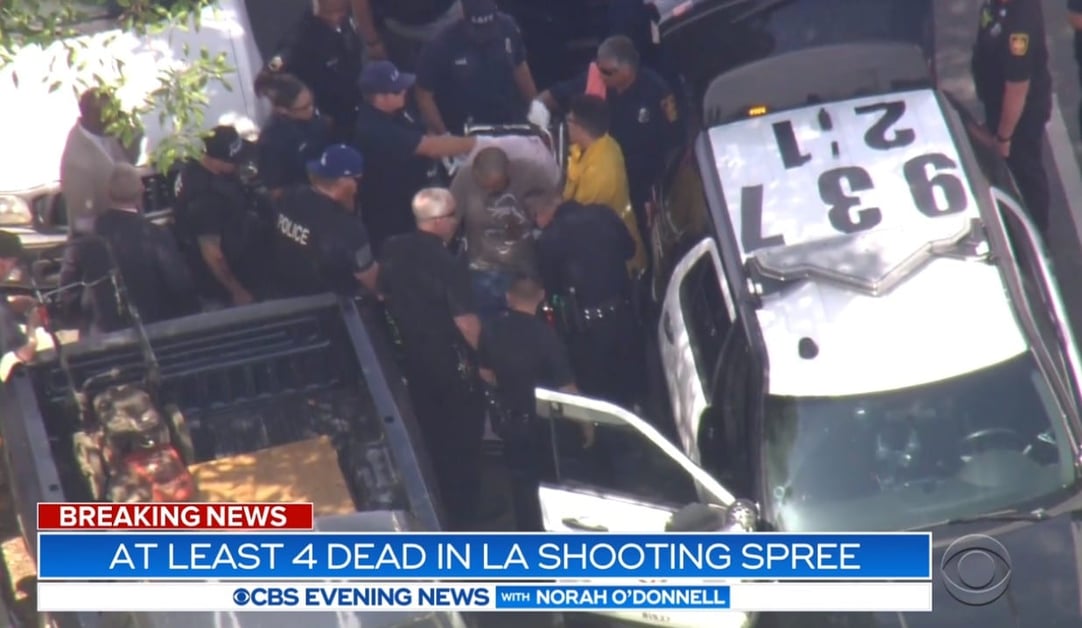 LOS ANGELES, CALIFORNIA — A man is in custody after shooting and killing members of his family, as well as others during a nearly all-day shooting spree.