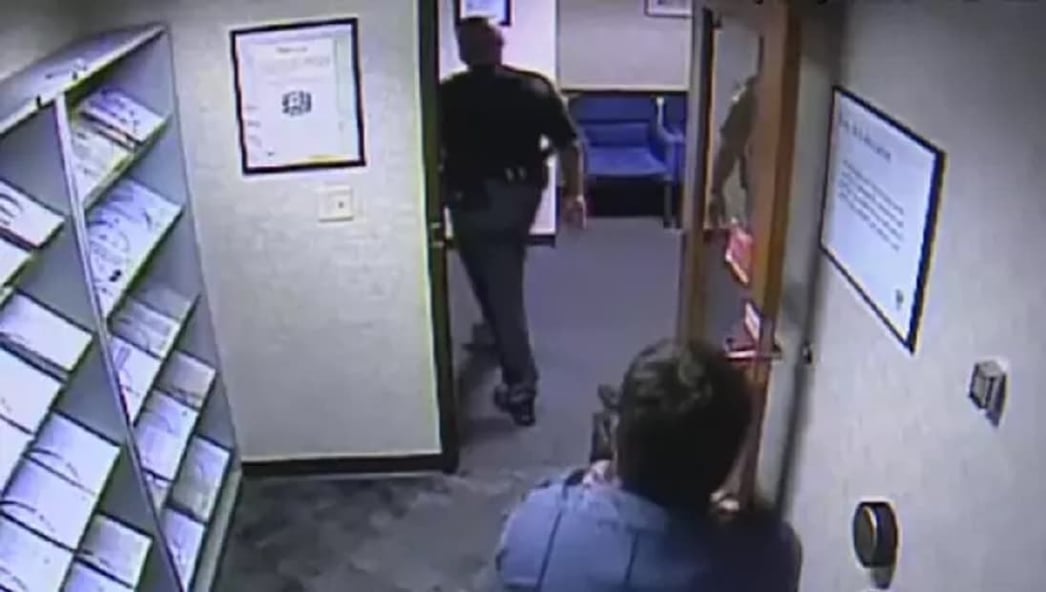 The guard, Seth Eklund, told Gaston that he would need to leave his firearm in his car. As an on-duty, uniformed law enforcement officer, Gaston said he had to leave it on his person, and turned to leave the building.