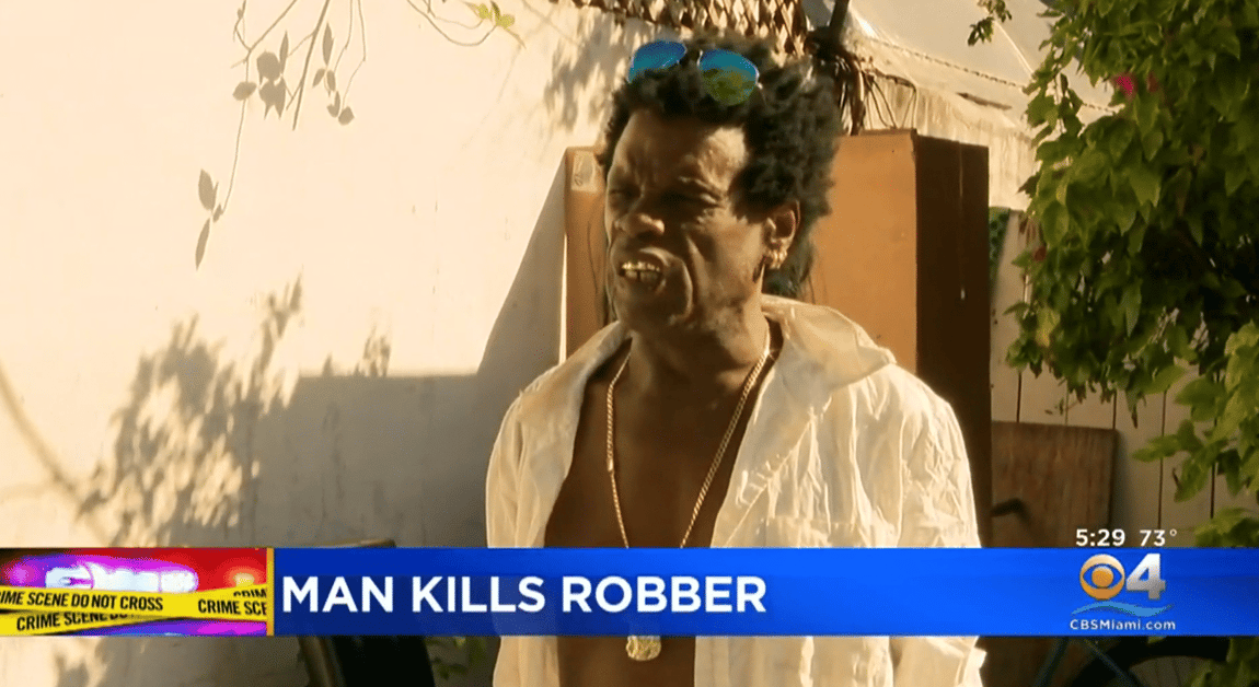 MIAMI, FLORIDA — He may dress and speak crudely, but what we have here is a classic tale of a legally armed American defending himself and his family. A car thief armed with an AK-47 tries to rob a van at gunpoint, and is met with lethal force.