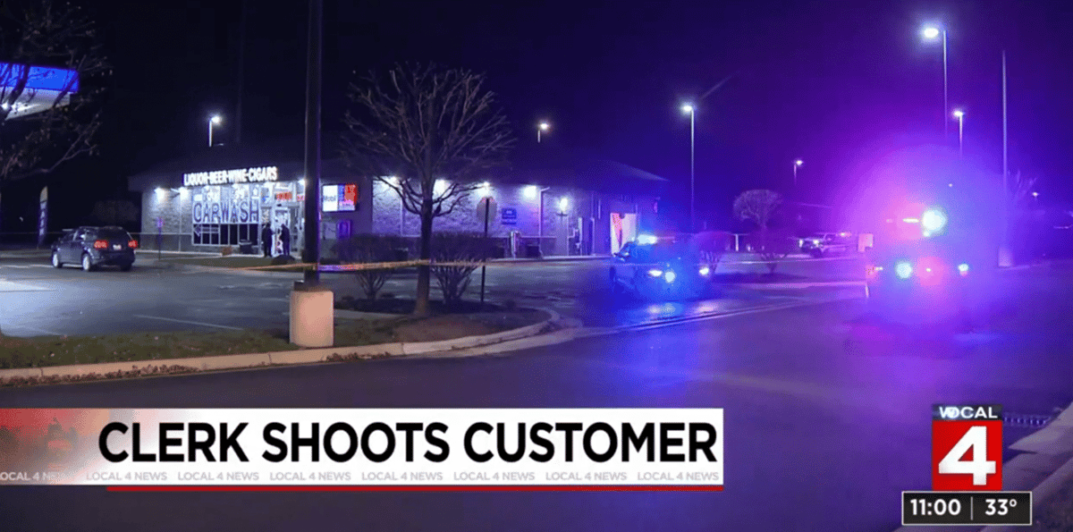 The report did not say that his was a robbery attempt, so it looks like the man with the bottle was just looking to assault someone. Of course, for the clerk, being smashed on the head by a bottle was enough to take strong self defense measures. In this case, the clerk drew his gun and fired.