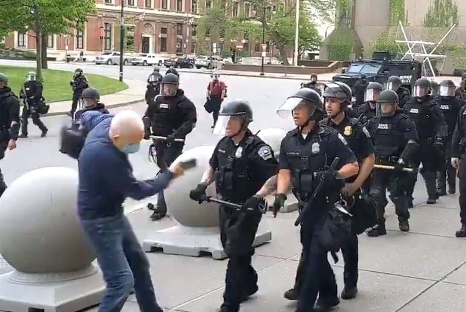 BREAKING NOW: I just confirmed, the 2 officers seen shoving the elderly man in this video have been suspended IMMEDIATELY, according to the Buffalo police commissioner. pic.twitter.com/qbTvXAAPLH