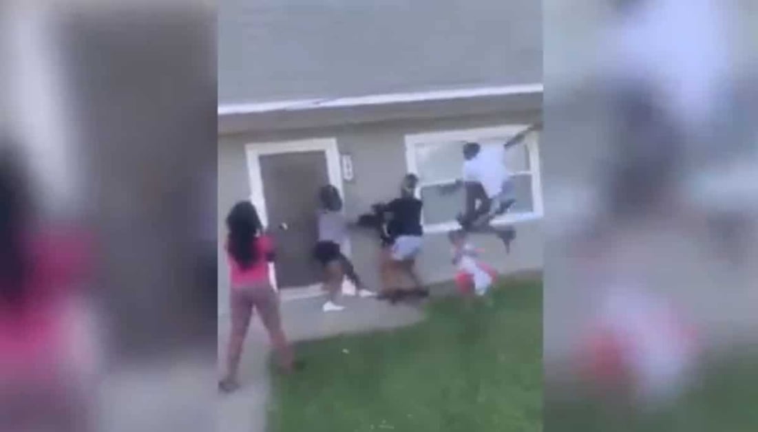 A video is circulating online that shows an Illinois mother, who is pregnant, being attacked by a group of people. Her toddler, crying nearby, is seen being drop-kicked by a young man who runs into view of the camera. After kicking the toddler, the man then draws his attention to the mother who is already receiving a brutal beatdown.