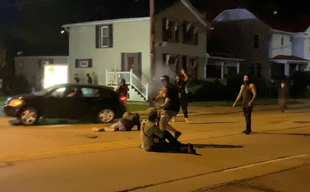 A crowd chases a suspected shooter down in Kenosha. He trips and falls, then turns with the gun and fires several times. Shots can be heard fired elsewhere as well, corroborating reports of multiple shooters tonight #Kenosha #KenoshaRiots pic.twitter.com/qqsYWmngFW
