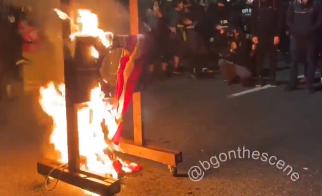 More violence and unrest came to Portland on Saturday night, with a group of over 200 protesters walking through the suburban streets. With them, they brought a Guillotine and some American Flags to burn, and then called on residents inside their homes to help them.