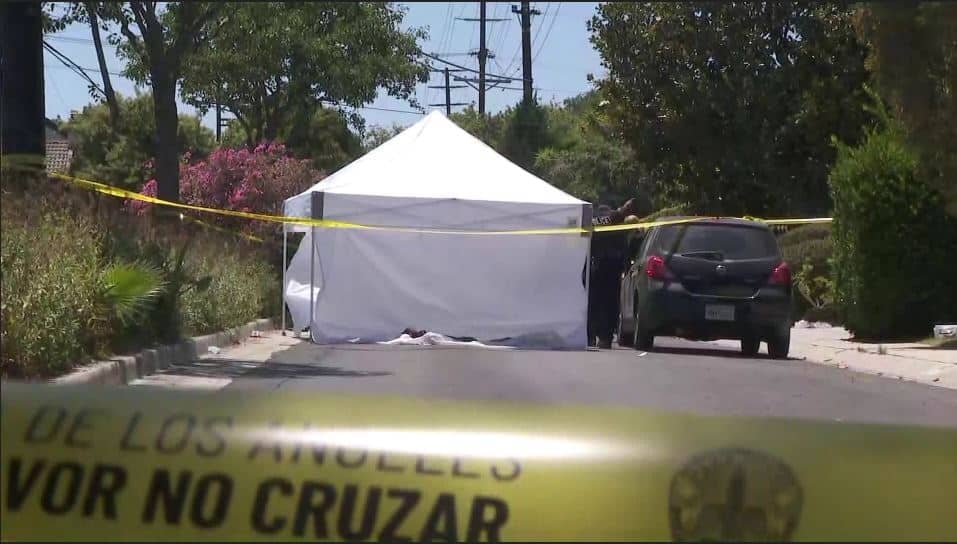 About 12:05 p.m., a man armed with a knife confronted a security guard at a construction site at Modjeska Place and Inglewood Boulevard, Los Angeles Police Department officials told KTLA.