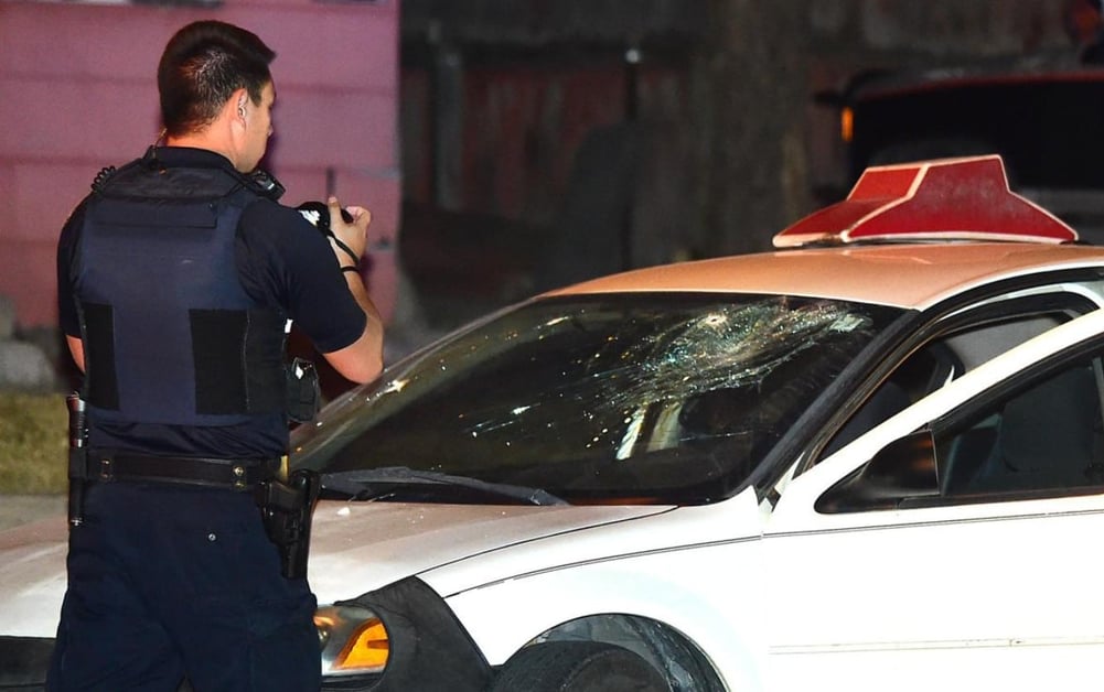 A white Sedan at the scene had a cracked windshield with visible holes. Reid said the suspect was struck in the abdomen, and then ran into a nearby alleyway where officers apprehended him. The delivery man remained under questioning by police, while the suspect was transported to St. Vincent Healthcare.
