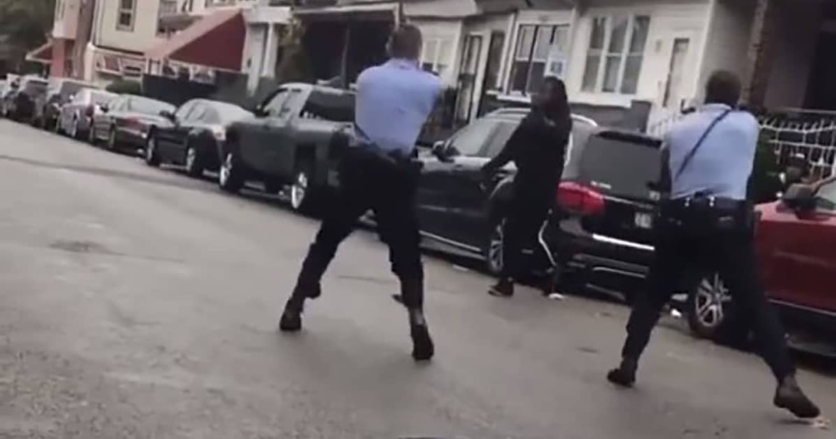 They yell at him to put his knife down. The two officers then fired several shots and Wallace collapses in the street. A woman runs up to him screaming while several bystanders then approach him.