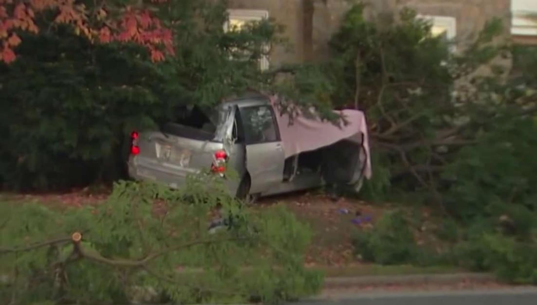 The crash took place at Montour and Longshore streets in the Lawndale neighborhood around 4:30 a.m. A neighbor reported hearing what sounded like multiple gunshots from a distance followed by a loud boom near her home.