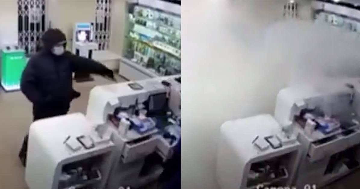 One employee who was paying attention quickly grabbed the gun and pointed it at the bad guy and hold him to leave. All the while, another employee grabbed a fire extinguisher and turned the store into a cloud.