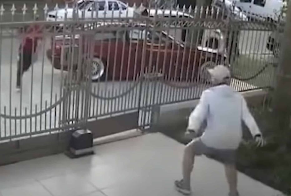 In the video below, it shows a man getting home and walking through his security gate. He’s quickly followed by three armed bad guys who are looking to rob him and get into his house.