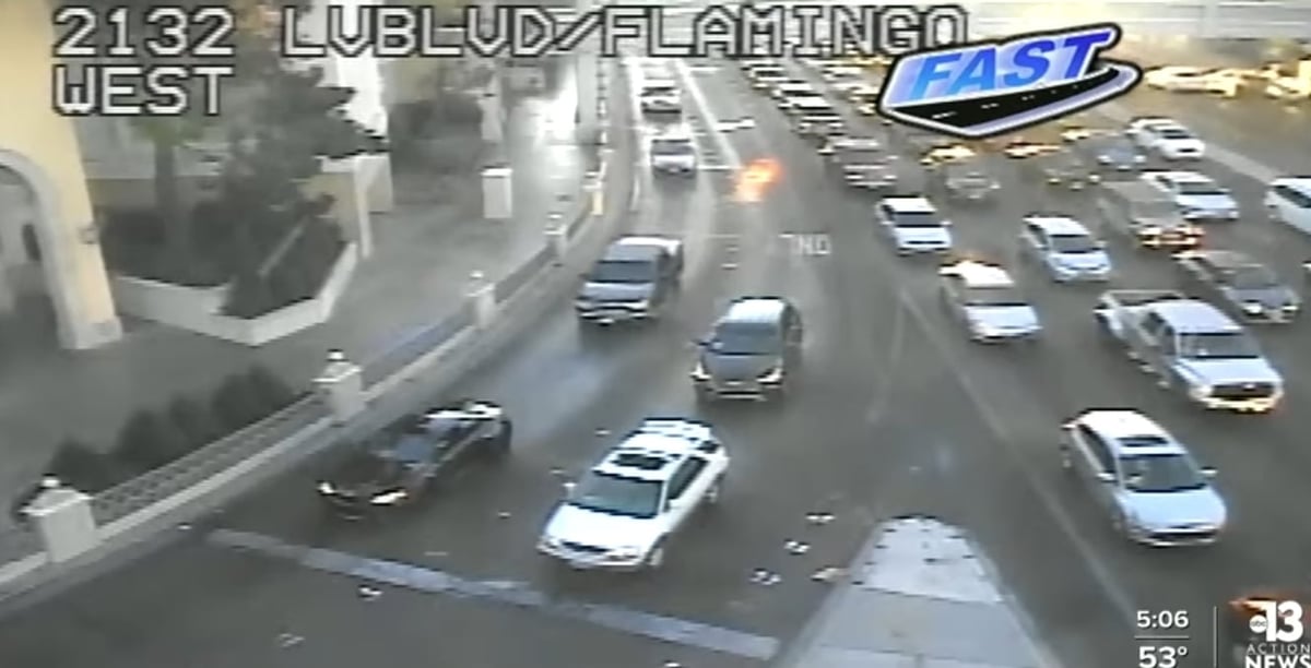 A man and a woman were walking down the strip when trouble cam looking for them.