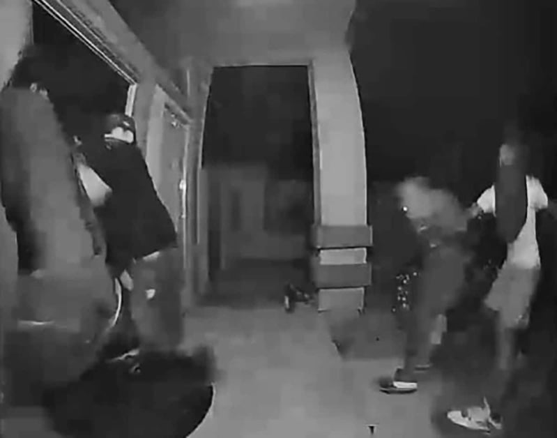 PHOENIX, ARIZONA — A group of four armed men were caught on surveillance video kicking in the front door of a home. They barely made it inside, however, because the homeowner immediately opened fire as soon as the door was breached.