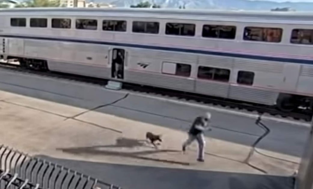 Footage was captured below that shows an officer running into the train when he heard gunshots, and then quickly retreat as he began to take fire from the suspect.
