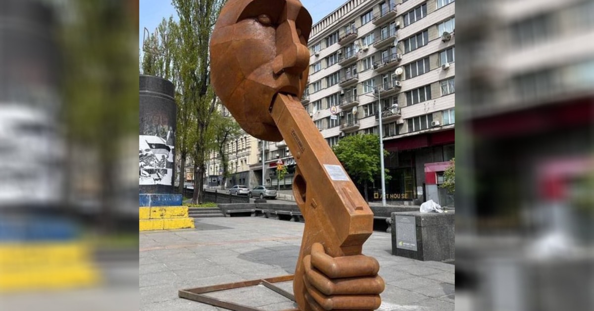 “Originally I had an idea to create something that would motivate our soldiers to keep on killing Russians,” the sculptor told reporters. He didn’t comment on why it was removed, but said it’s being stored in the city and may be making another appearance in a different location.