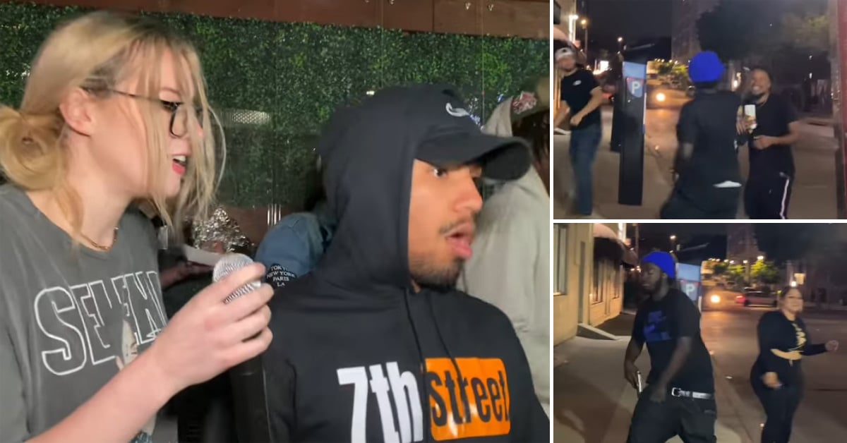 A group of people were performing some sort of interview on the street when the incident happened, which seems to be unrelated to the people doing the interview.