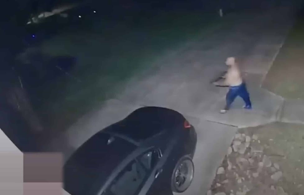 He then retreats into the home and comes back out with a “bigger gun”.