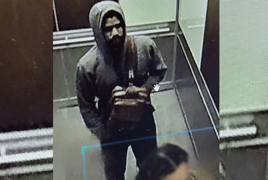 The Atlanta police have released several photos of the suspect, who is seen holding what appears to be a handgun inside a set of glass doors. He is dressed in a gray or black hoodie and carrying a bag.