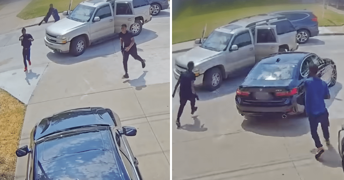 A Texas man returning home from work was followed by an SUV with 3 people inside. They came to his driveway and jumped out of the SUV with guns in hand. The driver of the car let them get a little too close in my opinion, but then hit the gas and got out of there.
